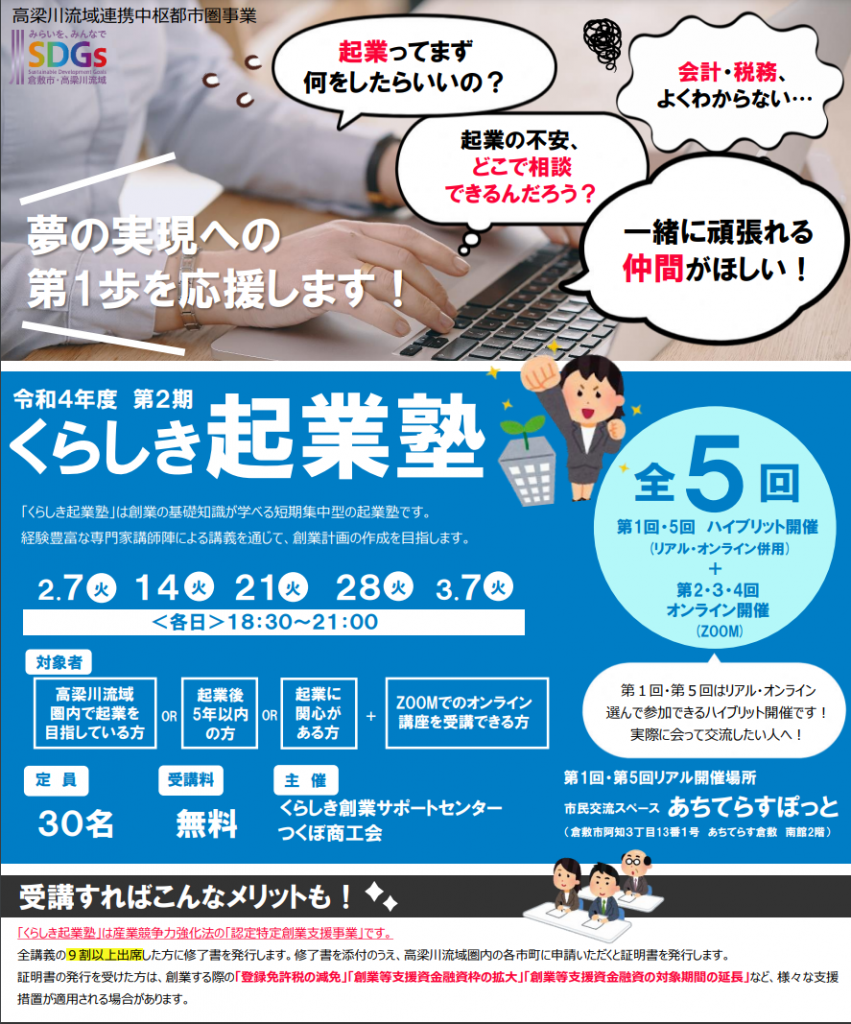 令和4年度「くらしき起業塾」の受講生を募集しています!