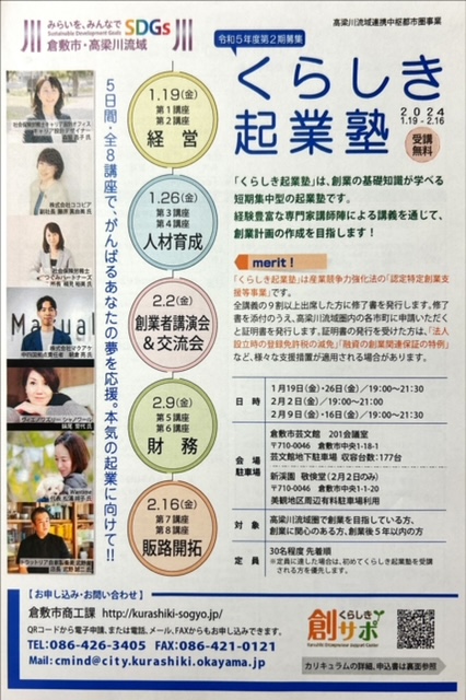 「くらしき起業塾」は創業の基礎知識が学べる短期集中型の起業塾です。